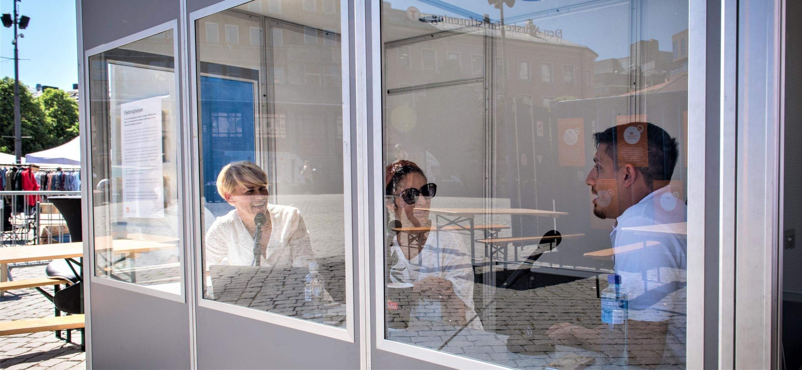 På forsommeren i år hadde Flyktninghjelpen et opplevelsessenter for unge på Youngstorget i Oslo. Her fikk ungdom lære mer om hvordan det er å være ung på flukt. Flere skoleklasser stakk innom og møtte blant andre Khalid.