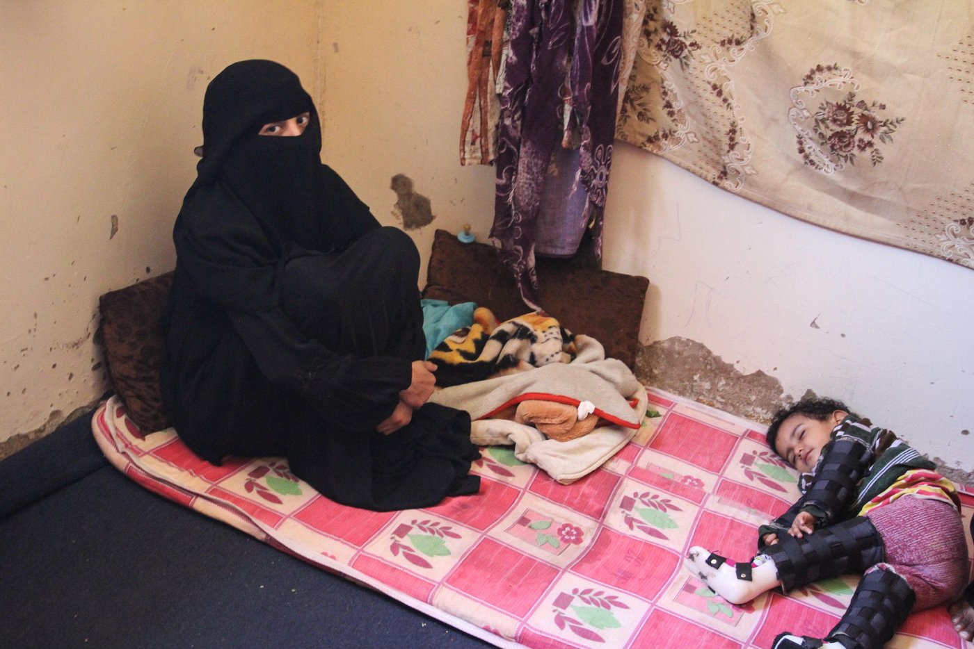 — Forrige måned hadde jeg ikke ha råd til medisin til Rahaf, beina hennes stivnet helt. Legen skjente på meg og slo knyttneven i bordet: ’Hvorfor tok du henne ikke med til behandling, hvorfor kjøpte du ikke medisiner, nå kan du se, hun er blitt mye verre!’ Legen sa at vi måtte fortsette å gi henne medisiner. Det koster 35 000 Jemenittiske Real (800-900 NOK) hver måned, og vi har knapt råd til mat til de andre barna. Forrige måned måtte jeg velge mellom å la de andre barna sulte, eller behandle henne, sier Abdo.