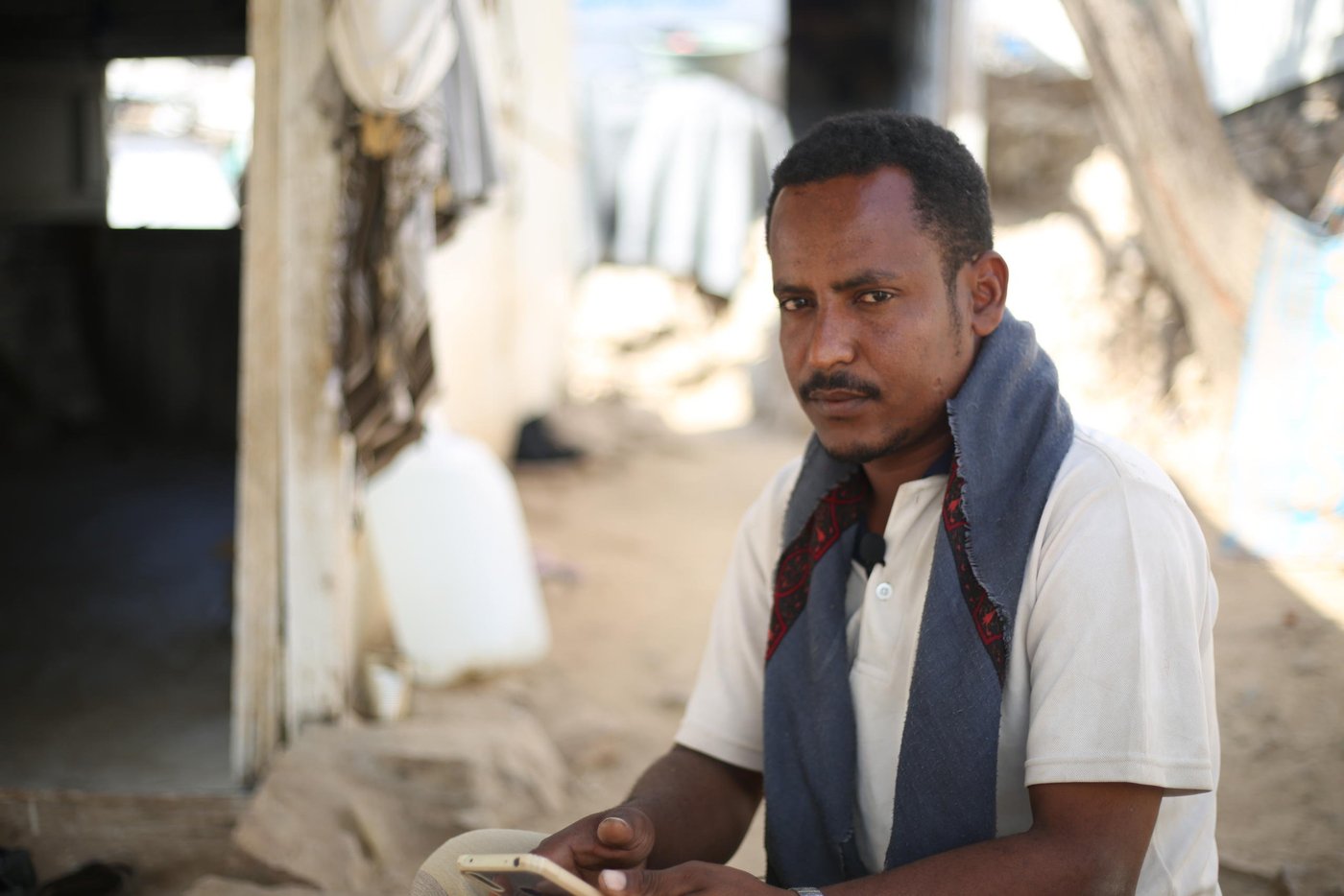Mohammed Al-Jaradi er på flukt fra Hodeida vest i landet. Som ansatt i det offentlige har han ikke mottatt lønn på årevis. Hadde han reist hjem, ville han og familien sultet.