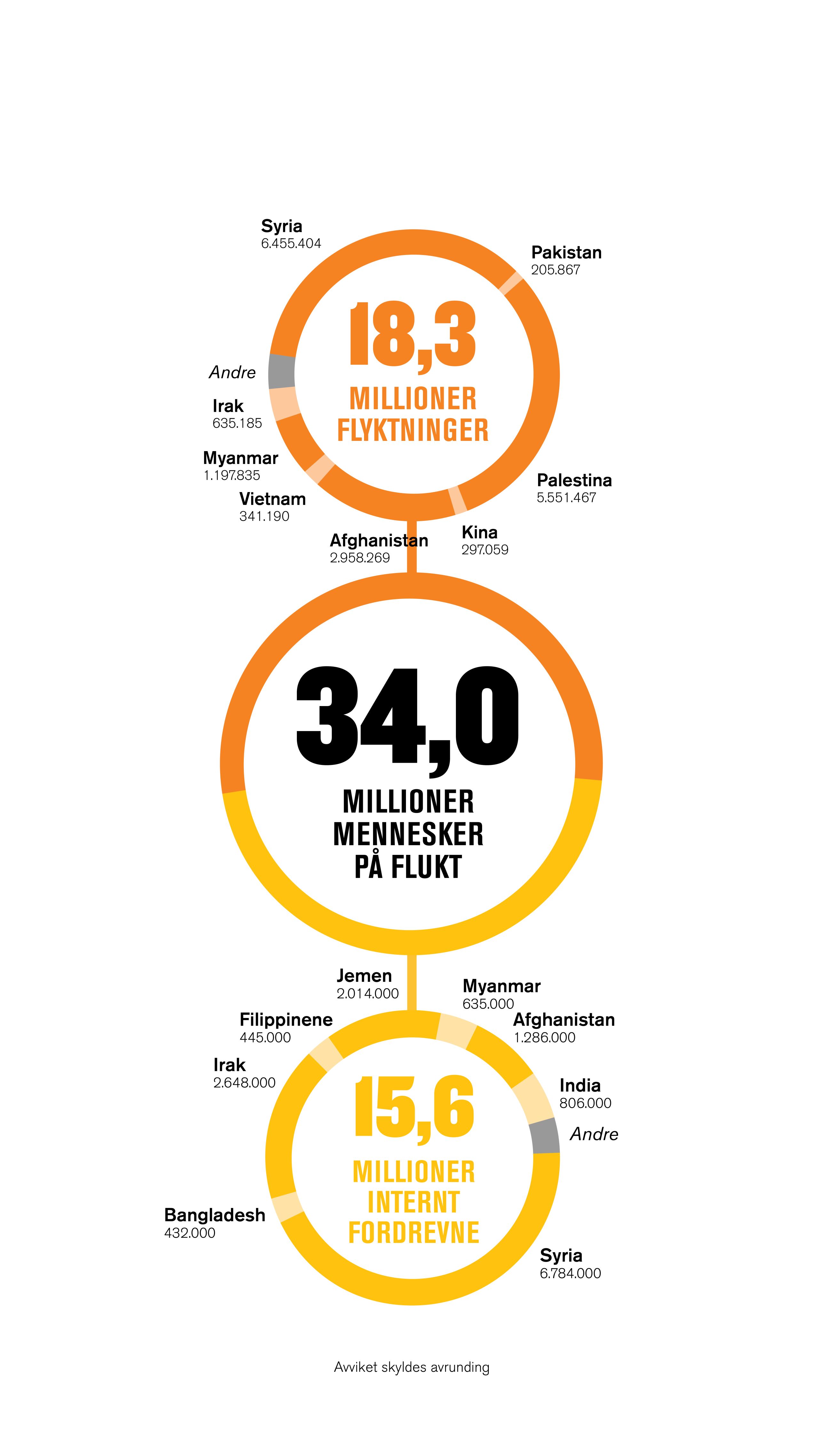 mennesker ble drevet på flukt i Midtøsten. Av dem ble 4,5 millioner drevet på flukt i eget land.