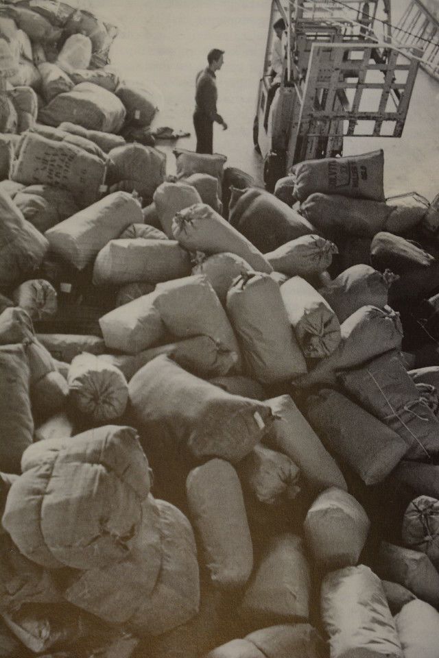 WOOLLEN BLANKETS: The result of the Algeria fundraising campaign in 1962: 150,000 woollen blankets are loaded in the port of Oslo. Photo: NRC