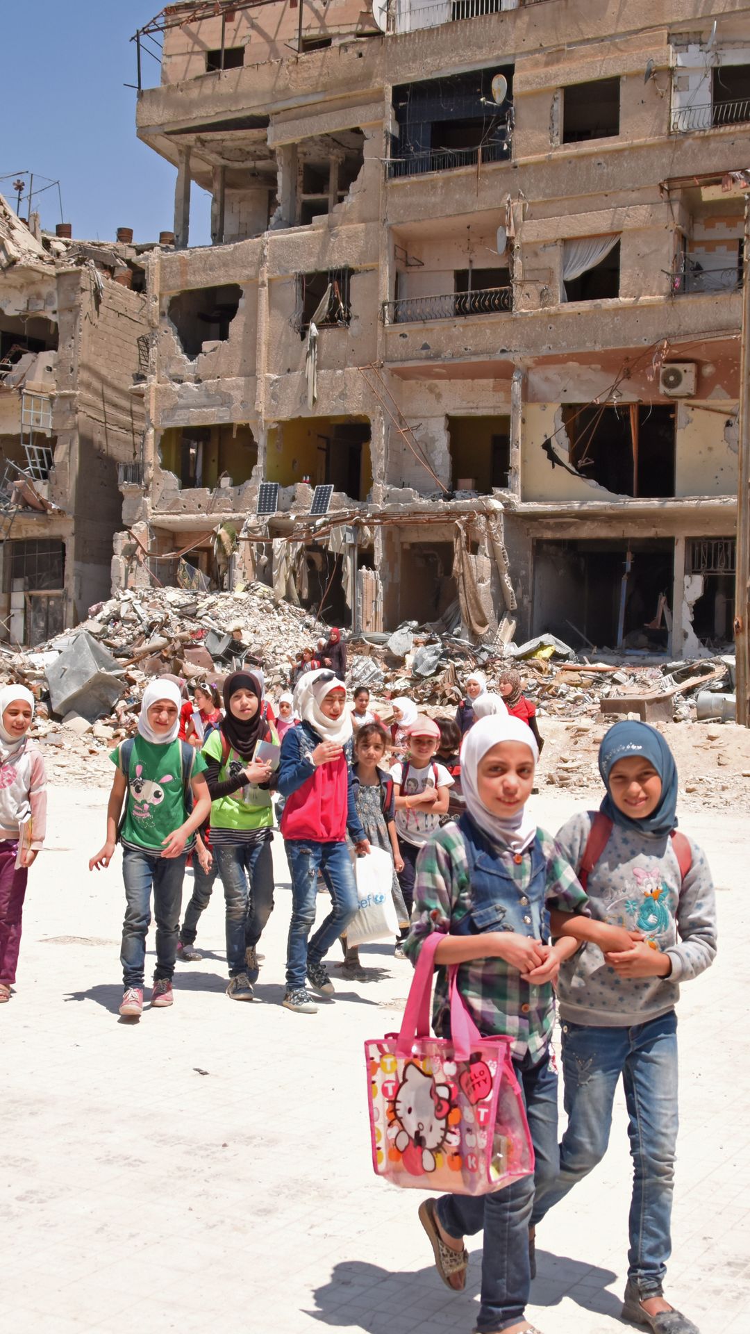 The war in Syria displaces half the population. More than five million people end up as refugees in neighbouring countries, with no opportunity to return home. Most become dependent on humanitarian aid to survive.