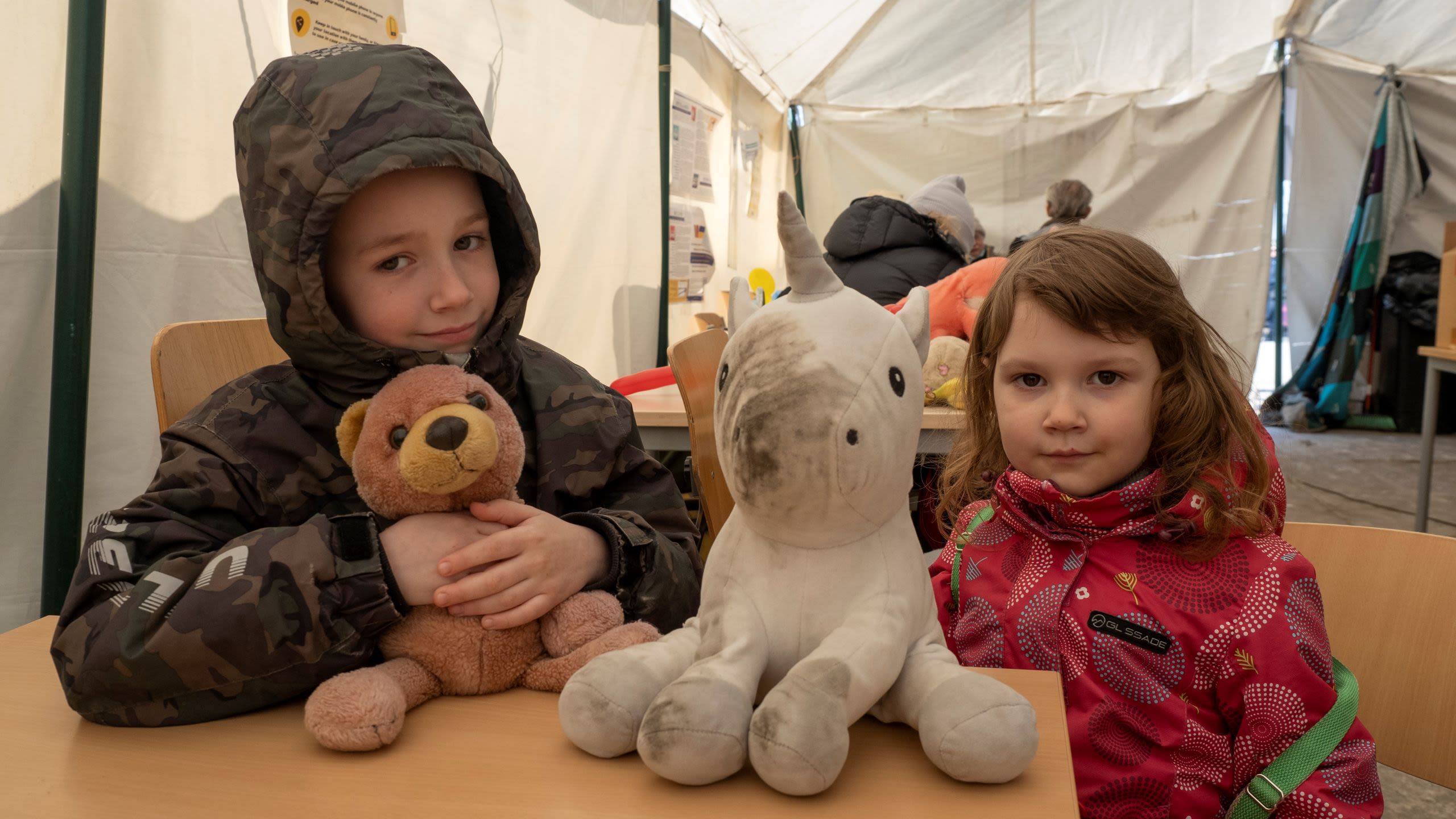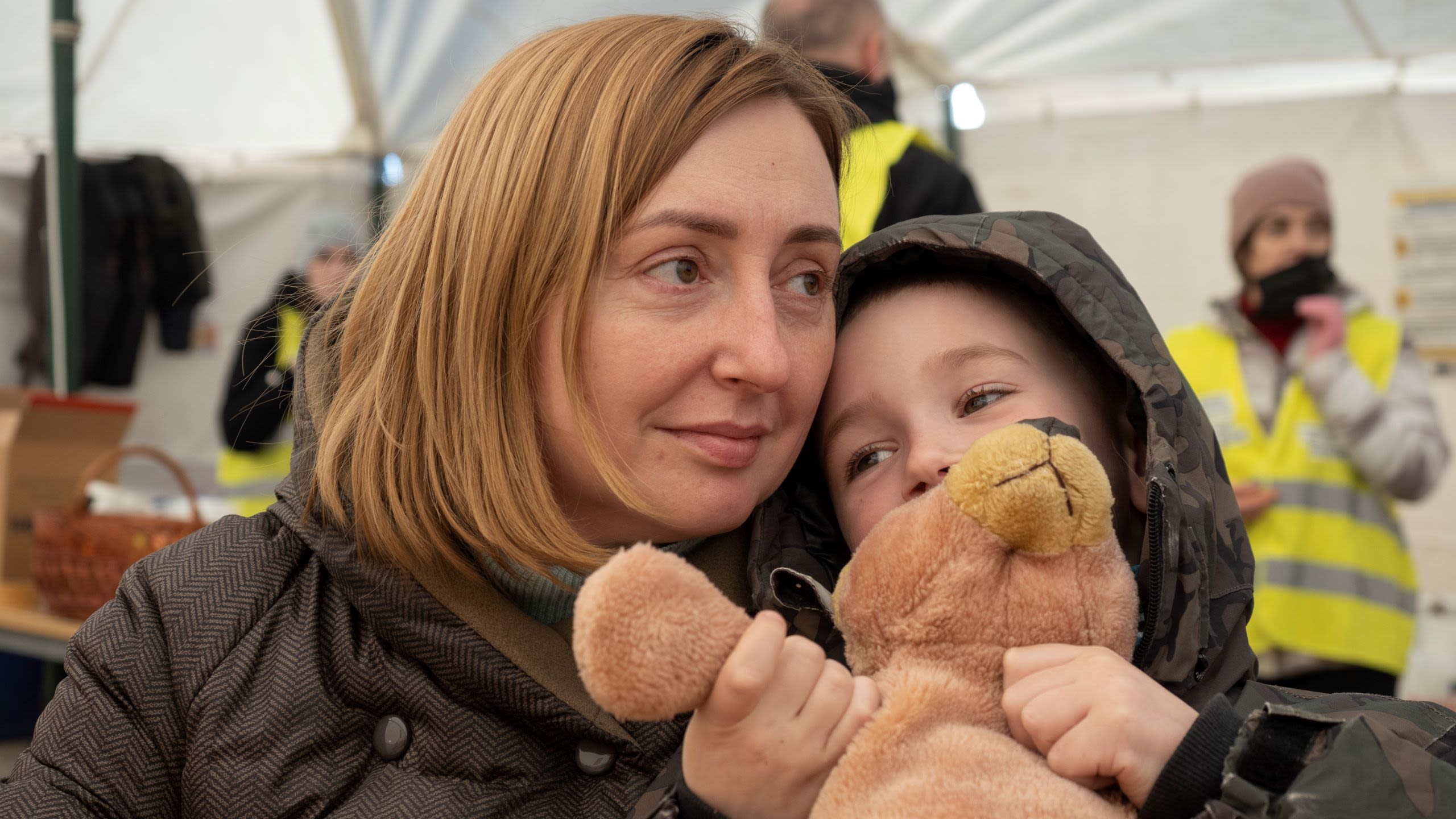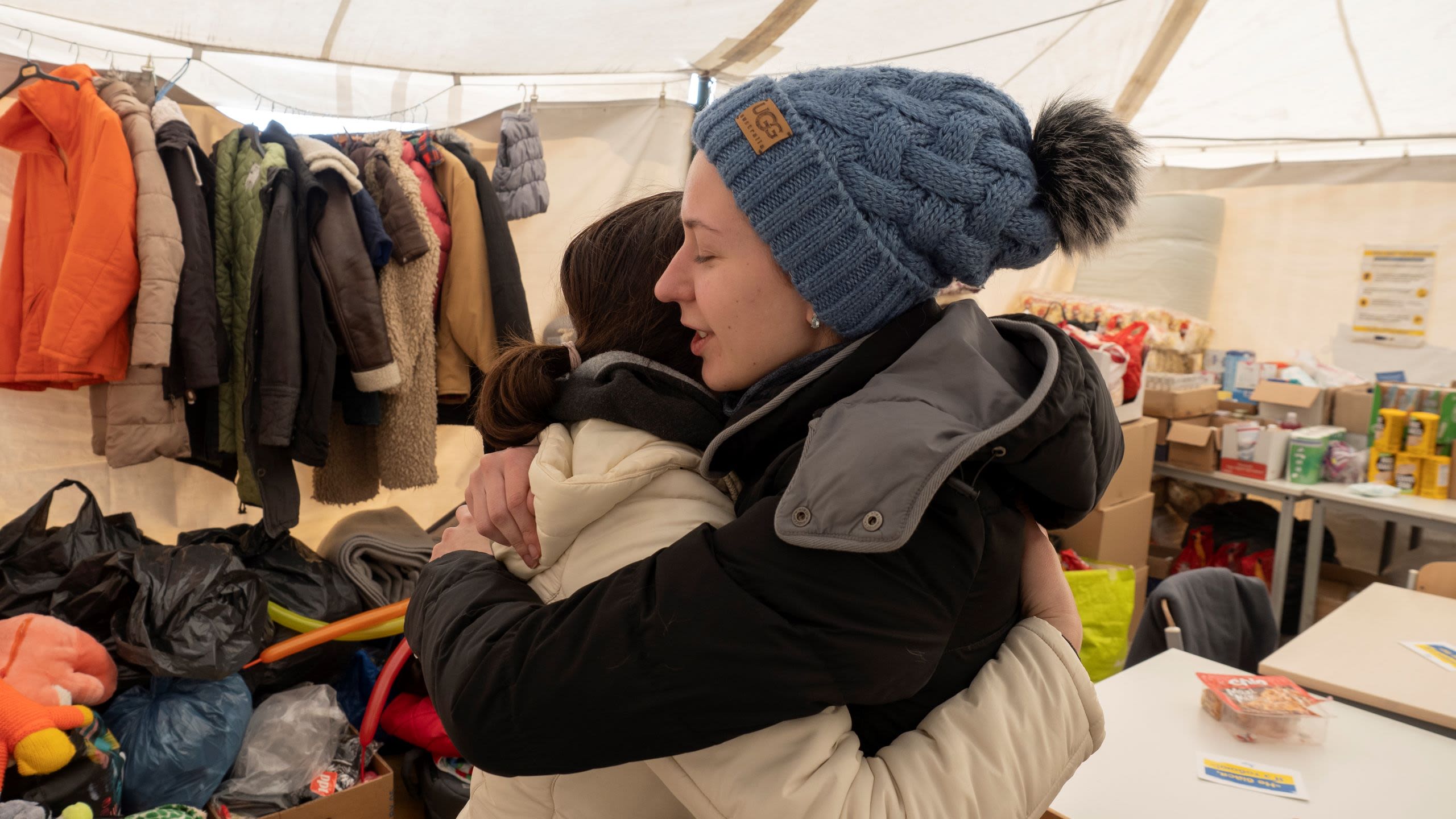 Olya hadde reist til grensen til Romania sammen med sine to barn, Makar (7) og Bogdana (5). Tretthet og stress blandet seg med lettelse i ansiktet hennes, mens hun hvilte i et av de oppvarmede teltene ved grenseovergangen.
