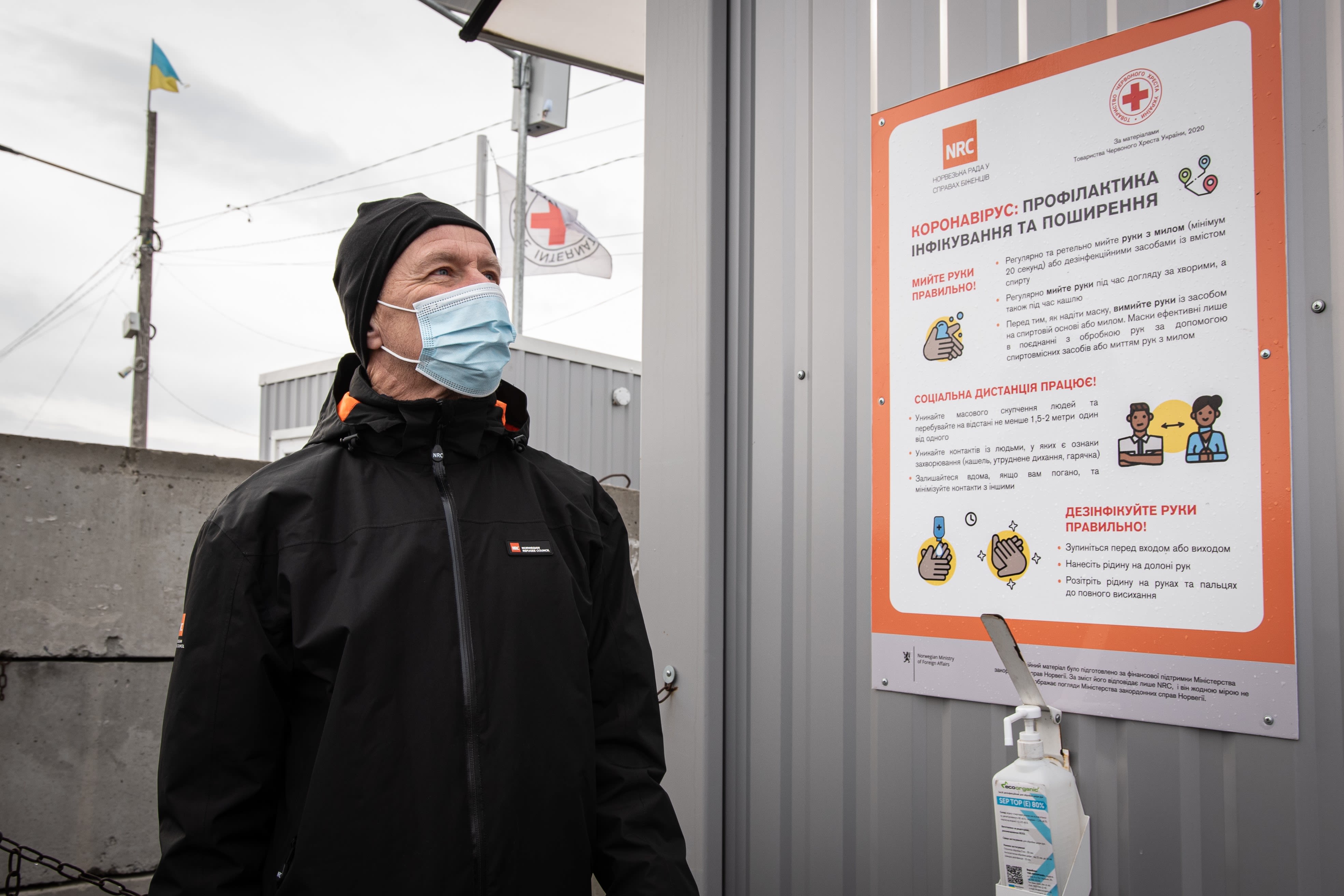 NRC's Secretary General Jan Egeland at Stanytsia Luhanska crossingpoint. Photo: Tiril Skarstein/NRC