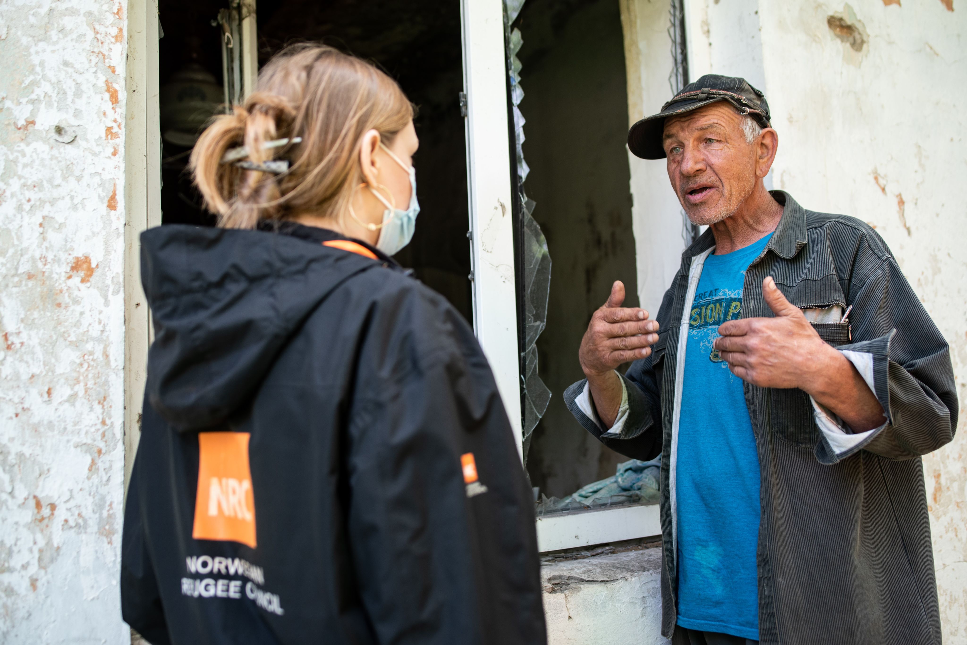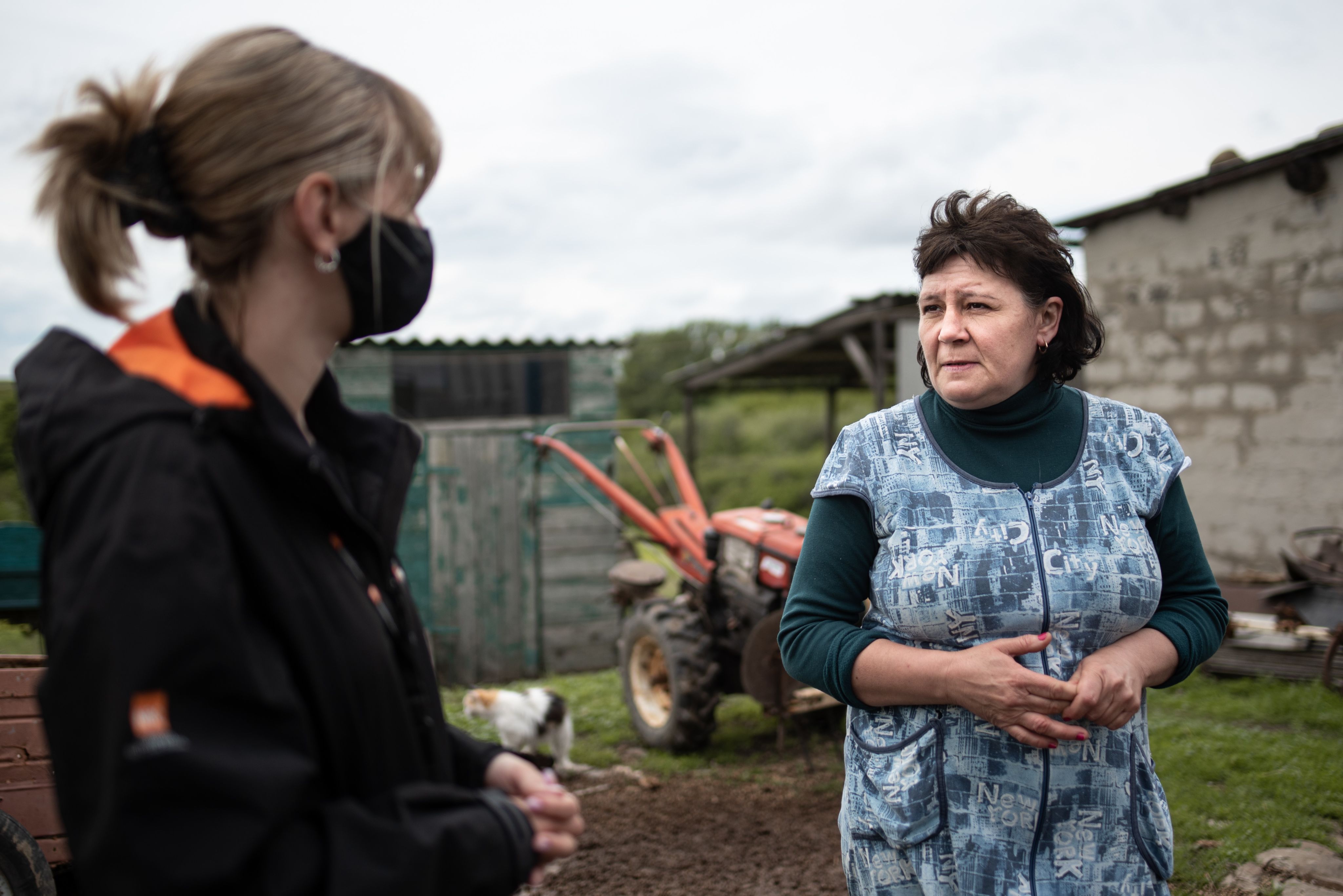 Viacheslav’s wife talking to NRC’s Svitlana Hlazunova. Photo: Christian Jepsen/NRC