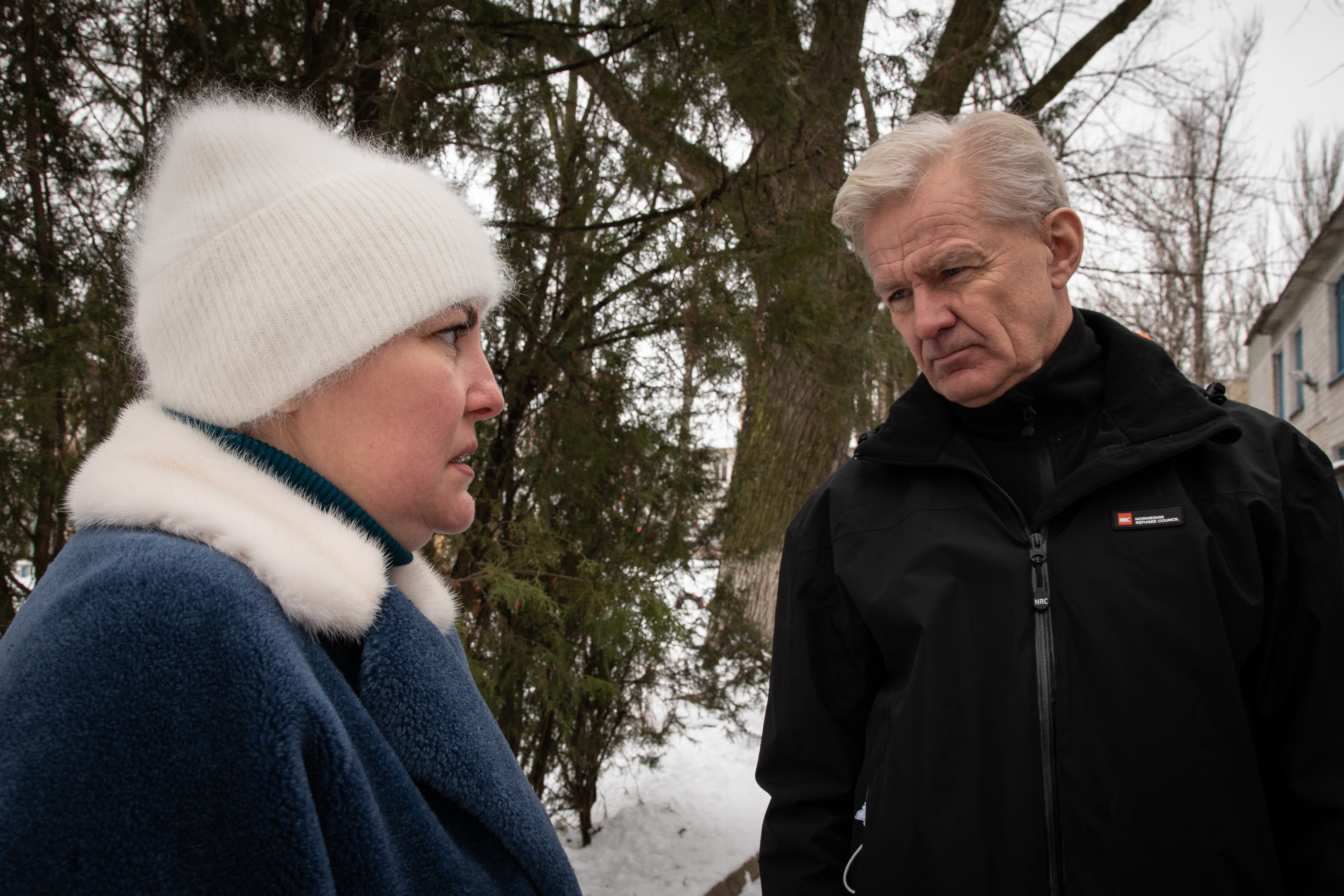 Natalia met with Jan Egeland, Secretary General of NRC, on his visit to Ukraine in February 2022. Photo: Tiril Skarstein/NRC